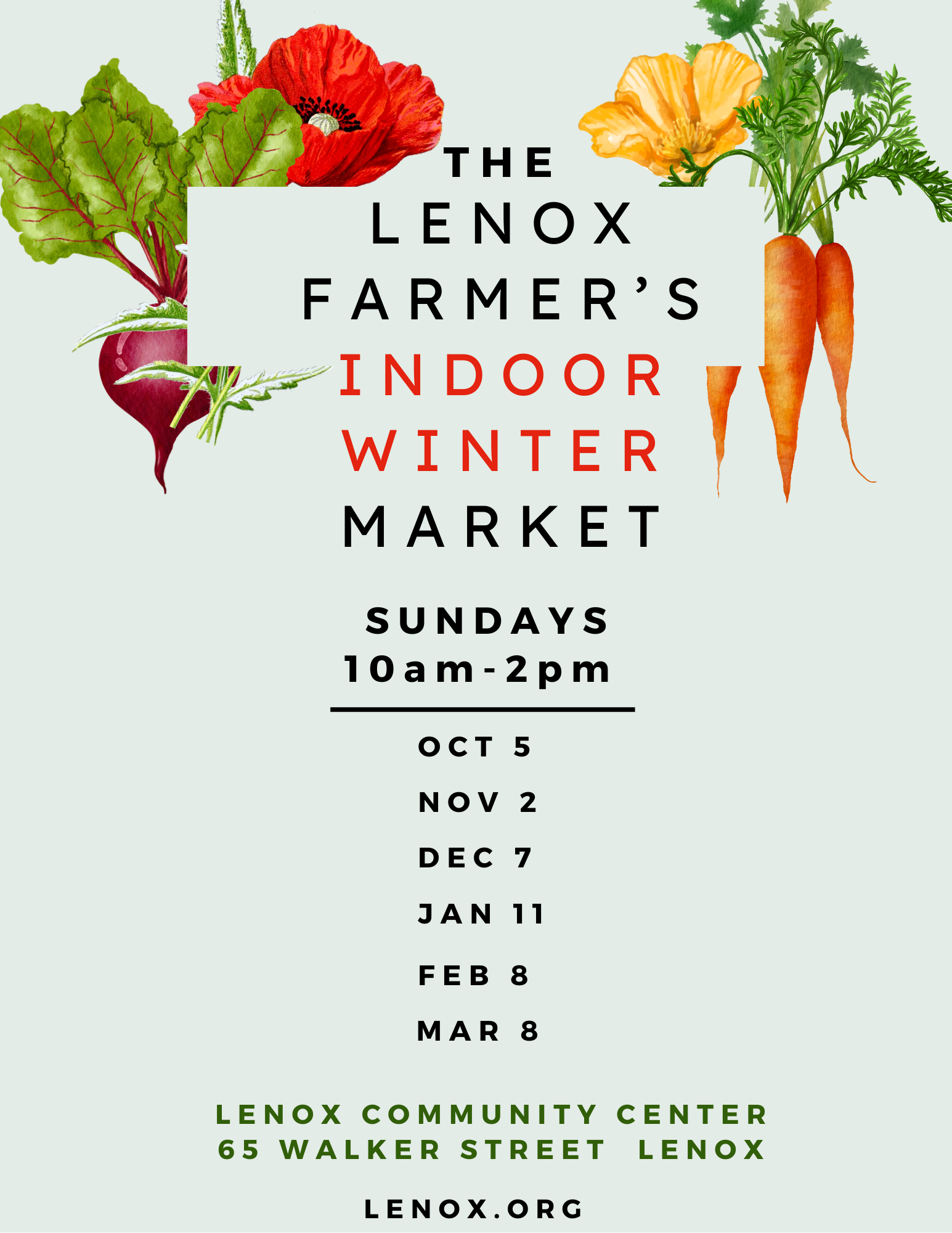 The 2026 Lenox Farmer’s market will be held every Friday, May 22 through October 2 from 11am-3pm at 134 Main Street (St. Ann’s Parish).
