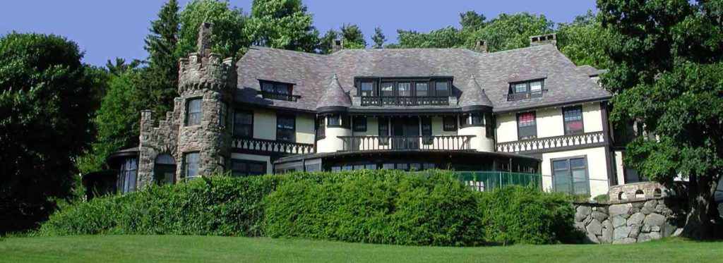 Like many “Cottage” locations, Wyndhurst replaced an earlier, humbler dwelling – Blossom Farm. Blossom Farm was owned for awhile by temporary but enthusiastic Lenox resident Henry Ward Beecher. The original (1857) Wyndhurst was built by General John Rathbone. Today’s Wyndhurst/CranwellMiraval was built in 1893 by J.D. Slaone. By now known as Beecher Hill, J.D. Sloane bought the property and, in 1893, built a new Wyndhurst, which stands today. Later known as Cranwell, it was once one of Lenox’s mid-20th century private schools. It is now Miraval, an upscale resort and wellness center.