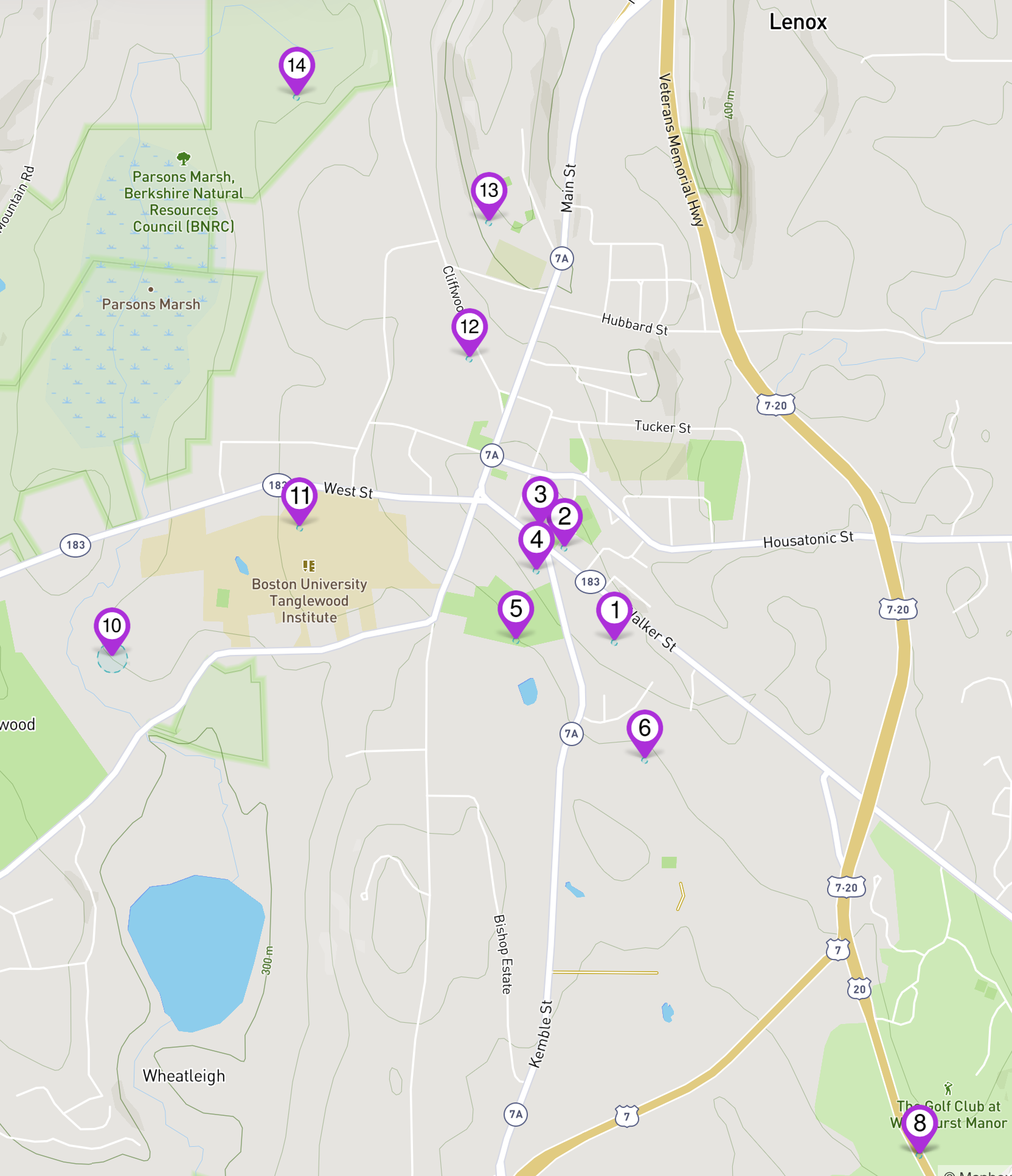 See how the other half lived — in the late 1800s — through this walking and driving tour of some of Lenox and Stockbridge’s most lavish Gilded Age (late 1800s to early 1900s) homes. Former summer retreats for the monied class, these once lavish “cottages” have taken on new lives and identities in the 21st century. All still glamorous, including one that now plays host to Miraval Berkshires Resort & Spa, these lovingly preserved treasures from the post-Civil War and post-Reconstruction eras, were where some of the nation’s wealthiest families came to relax and play. Stops 1 through 6 are all within walking distance near downtown Lenox. Stops 7 through 14 will require a horse-drawn carriage or modern car to reach comfortably!